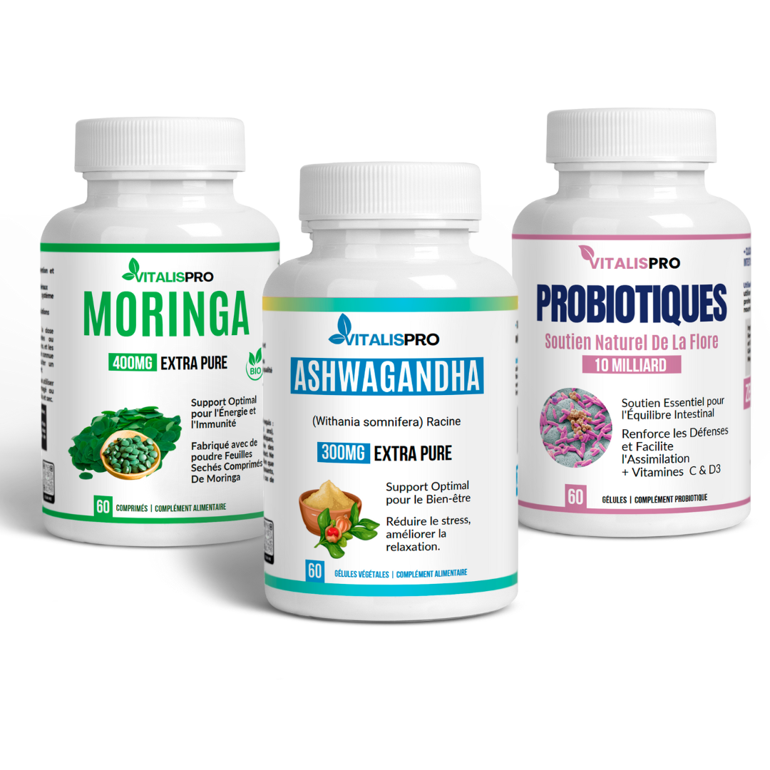 هل تعاني من القولون العصبي (بومزوي)؟ اكتشف مجموعة الراحة الثلاثية. أشواغاندا لتهدئة التوتر، بروبيوتيك لتوازن الأمعاء، ومورينجا للتغذية. الحل الطبيعي لراحتك.