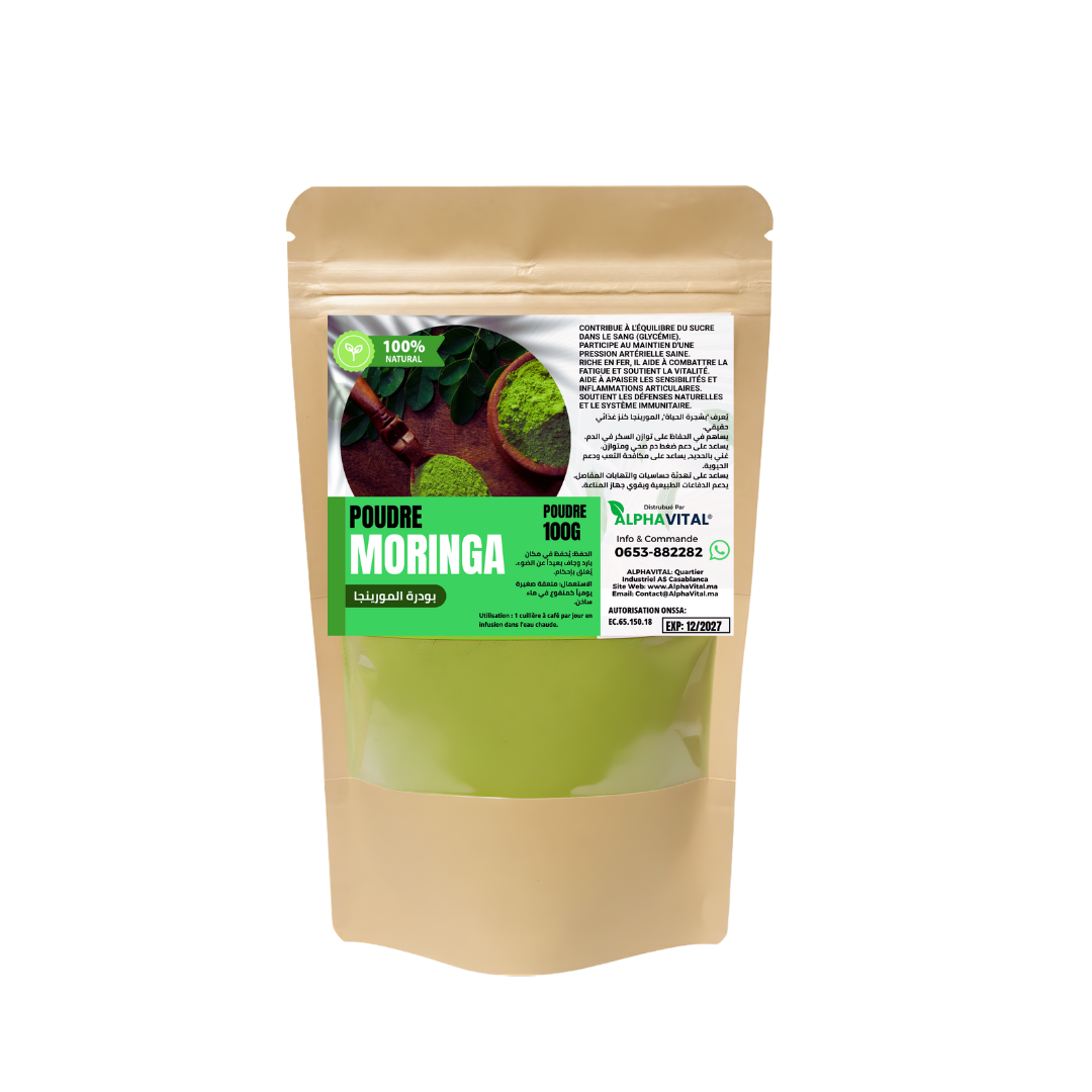 نقدم لك في Vitalispro مسحوق المورينجا العضوي، “شجرة الحياة” المعتمدة رسمياً من المكتب الوطني للسلامة الصحية للمنتجات الغذائية (ONSSA). هذا المنتج هو الحل الغذائي الفائق والداعم الأول لنمط حياتك الصحي.